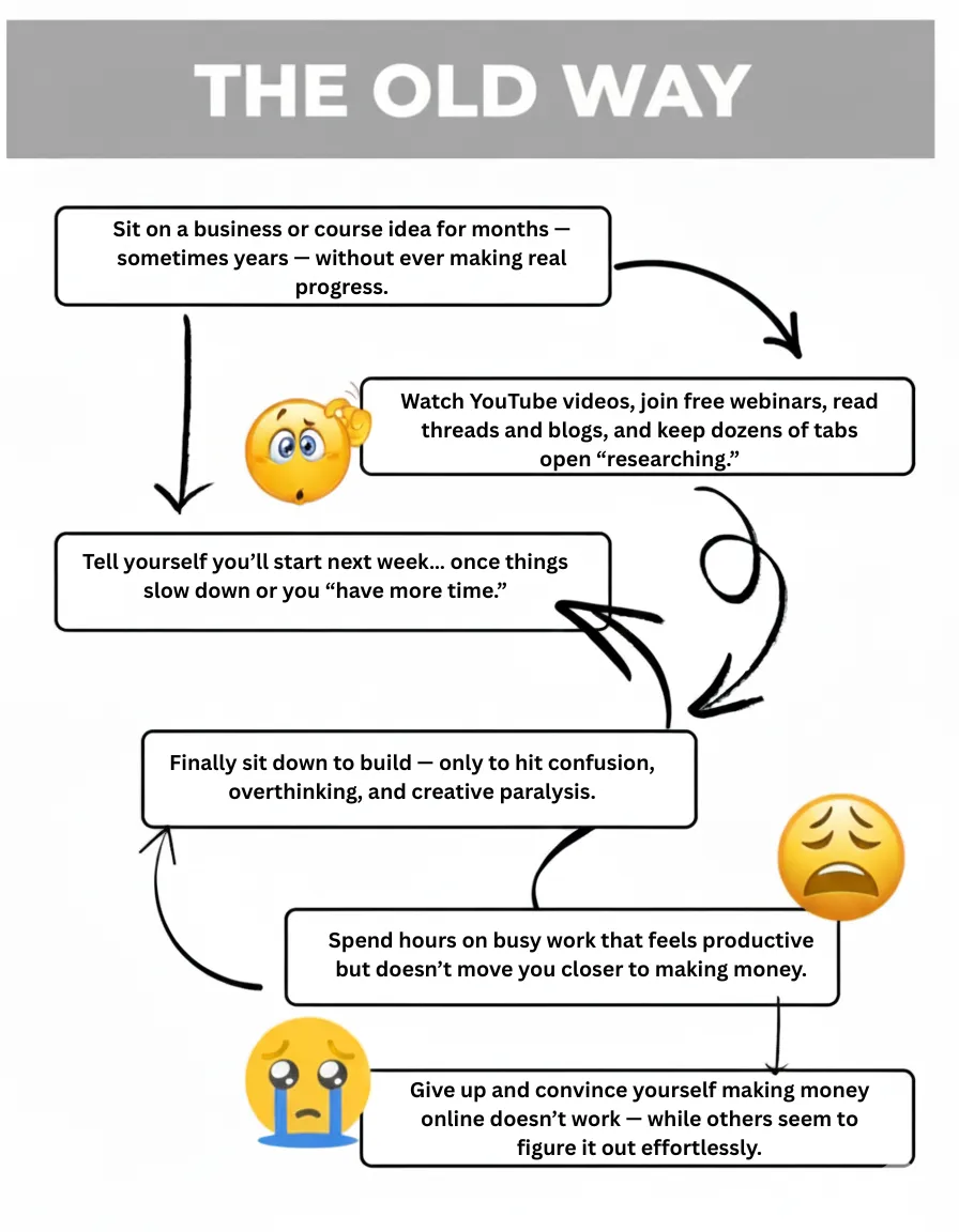 Just a clear, step-by-step path to go from “I know I should be doing something with AI” to a real business you can actually execute - fast