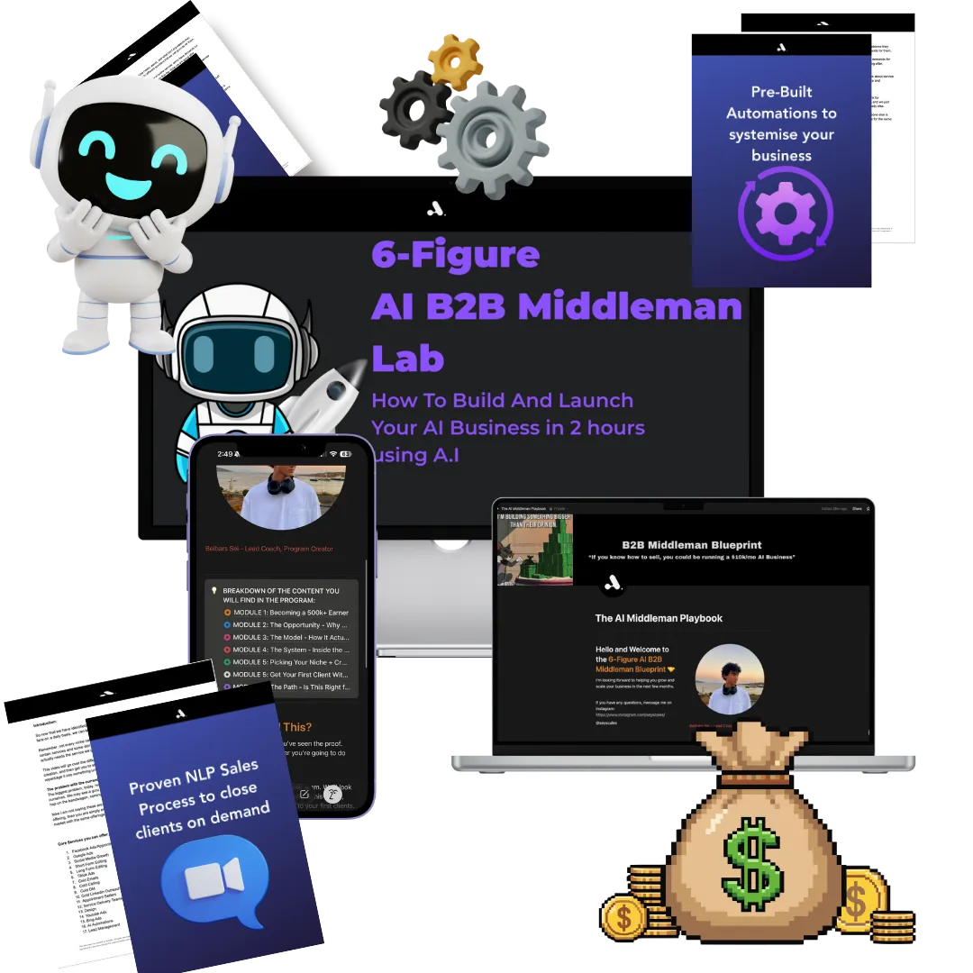 Everything you need to launch your AI B2B Middleman offer fast — including scripts, workflows, and a clear execution plan so you can go live in hours, not weeks.